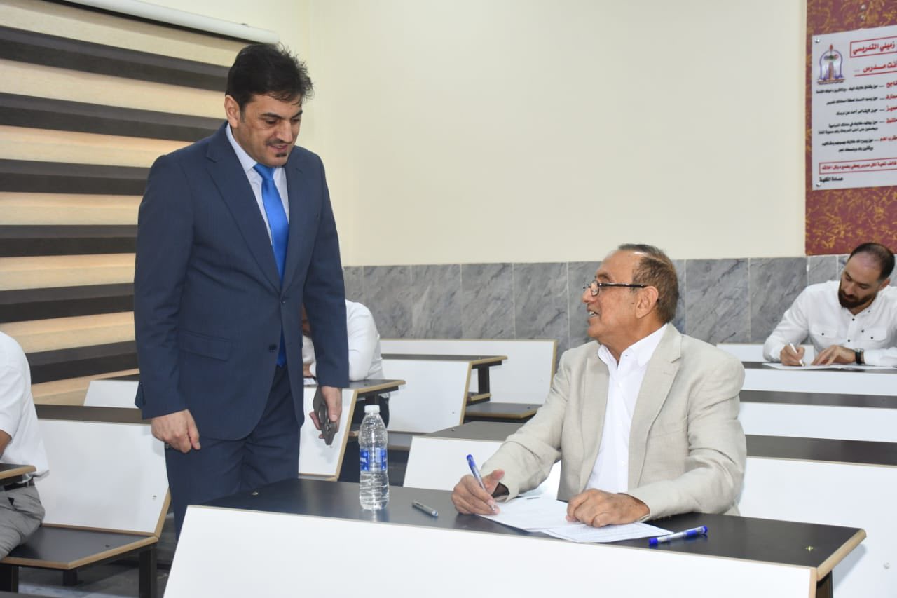 The dean of the faculty, Prof. Dr. Labib Zouyan Musaykh, attended the exam hall to monitor the progress of the exam and ensure that the appropriate atmosphere was provided to enable students to take their exams smoothly and calmly.
